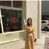 ビタミンカラーが夏にぴったりなロングワンピースです。