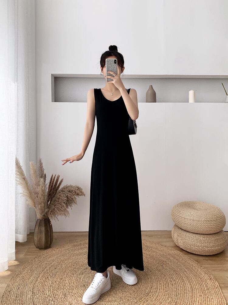 ワンピース フレアワンピース マキシ丈 ノースリーブ Uネック 襟なし フレア Aライン かわいい 大人可愛い きれいめ シンプル カジュアル 大人 上品 おしゃれ かっこいい 大人可愛い 大人女子 こなれ感 モダン 無地 春 秋 10代 20代 30代 レディース 女性用 通勤 学生 通学 デート お出かけ 女子会 休日 着回し 普段使い 韓国系 コーデ スタイル 脚長 S M L XL 2XL 3XL ブラック | ATAOI