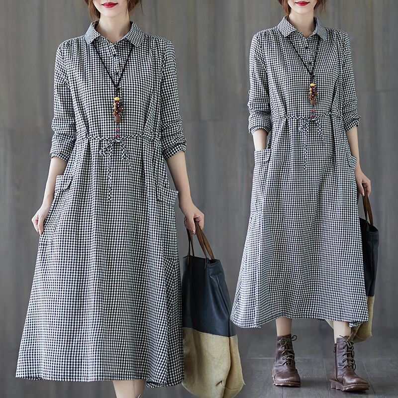 ワンピース シャツワンピース ロング ロング丈 長袖 スクエアネック Aライン ウエストリボン ハイウエスト 綿 かわいい 大人可愛い きれいめ シンプル カジュアル 大人 上品 おしゃれ かっこいい レトロ アジアン 大人可愛い 大人女子 こなれ感 ラフ キュート ガーリー モード系 フォーマル チェック柄 格子柄 春 夏 レディース デート お出かけ 休日 着回し 普段使い 重ね着 お揃い 韓国 韓国系 オルチャン ファッション スタイル モテ 美脚 脚長 サイズ | ATAOI