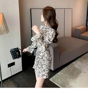 ワンピース ミニ ミニ丈 ショート ショート丈 袖あり 長袖 キャンディスリーブ ハイネック スリム タイト 細身 かわいい おとなかわいい 大人 おしゃれ お洒落 大人可愛い 大人女子 柄 春 夏 結婚式 二次会 披露宴 20代 30代 40代 レディース 女性用 デート パーティー イベント ファッション サイズ S M L アプリコット | ATAOI