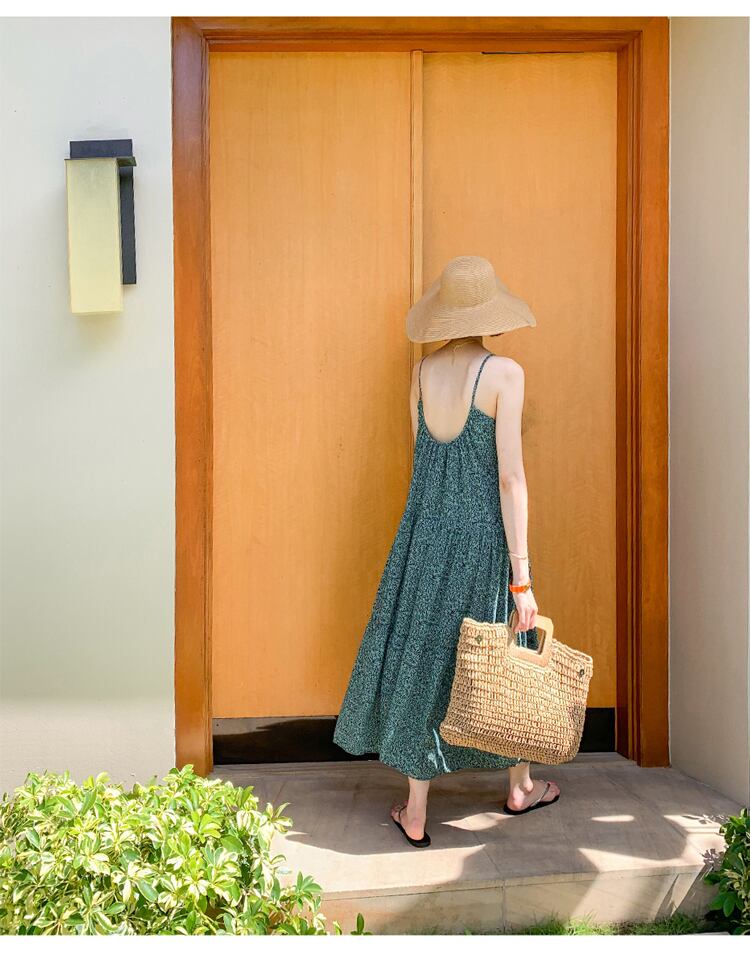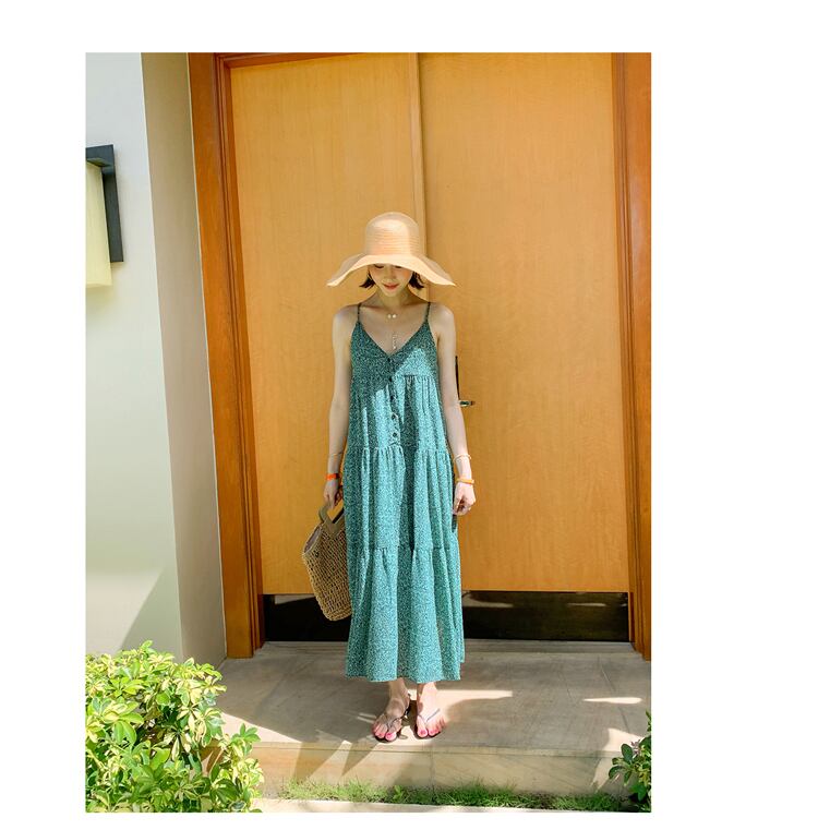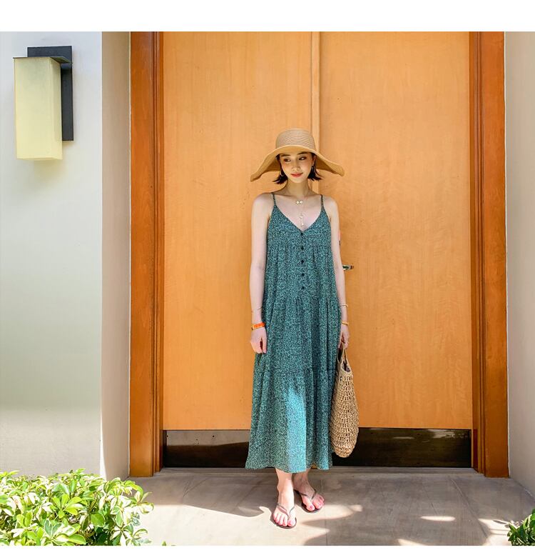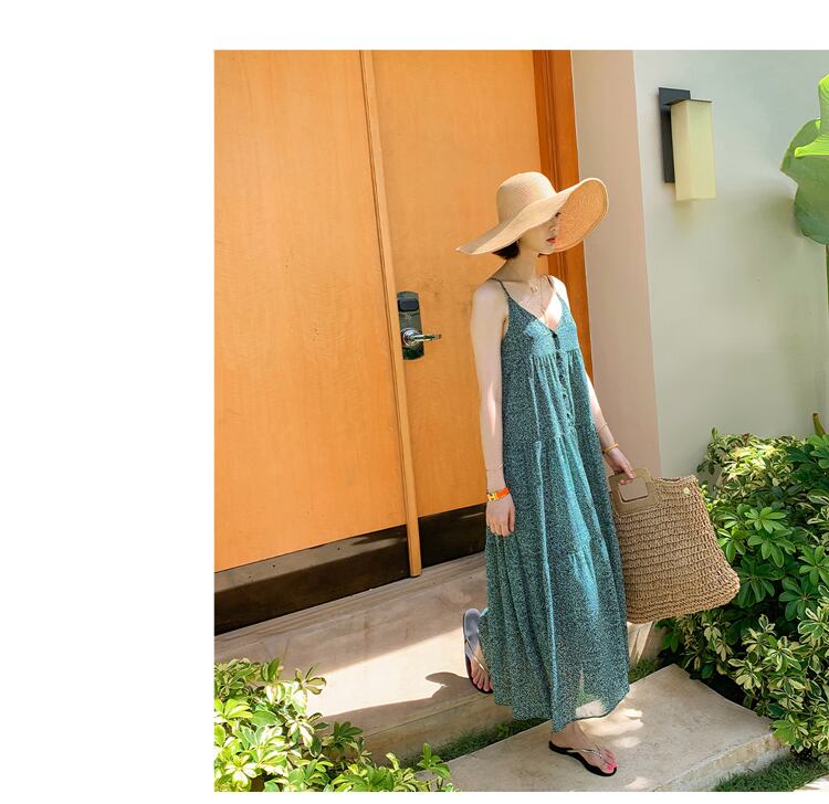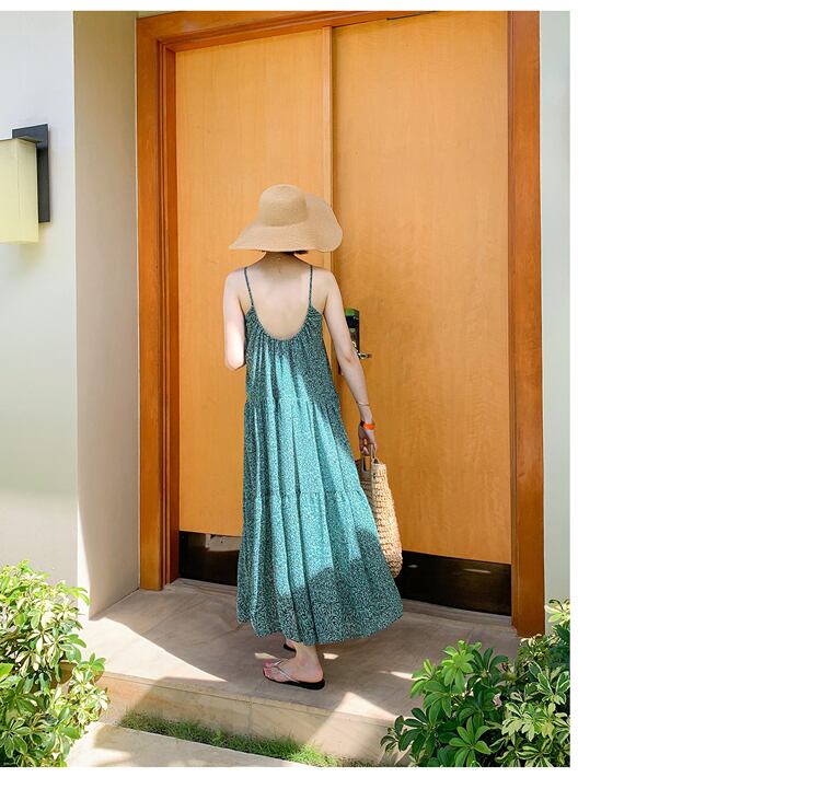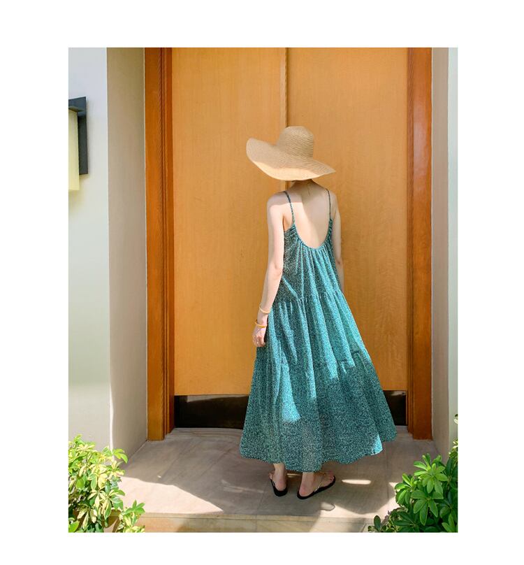 花柄ワンピース ドレス ロングワンピース ロング丈 シフォン Aライン 袖なし 襟なし Vネック 背中見せ 肩紐 プルオーバー ルーズフィット デコルテ レトロ 大人可愛い セクシー シンプル シック おしゃれ キュート カジュアル 柄 春 夏 10代 20代 30代 40代 レディース 女子用 イベント 学生 OL デート 休日 お出かけ ショッピング レストラン リゾート ホテル 旅行 海 山 オルチャンファッション モテコーデ トレンド サイズ S M L XL カラー 色 グリーン | ATAOI