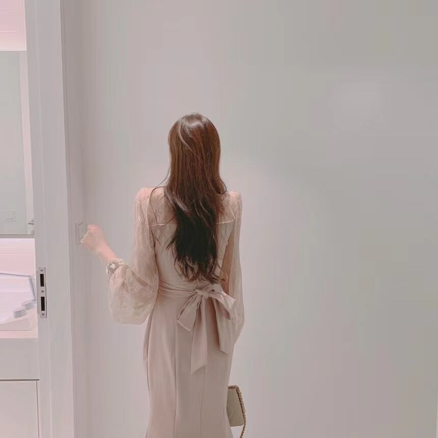 ワンピース ワンピドレス 膝下 ミモレ ミモレ丈 袖あり 長袖 ラウンドネック 襟なし スタンドカラー マーメイド レース リボン ウエストマーク ハイウエスト 透け感 シースルー 大人可愛い きれいめ 大人 上品 おしゃれ お洒落 セクシー エレガント 主役級 フォーマル 無地 春 秋 入学式 入園式 卒業式 卒園式 謝恩会 結婚式 二次会 披露宴 10代 20代 30代 40代 レディース 女性用 ママ パーティー イベント ホテル レストラン 韓国 スタイル 穴あき S M 黒 ブラック ピンク | ATAOI
