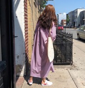 ゆったりルーズワイドなシルエットのシャツロングワンピースです。