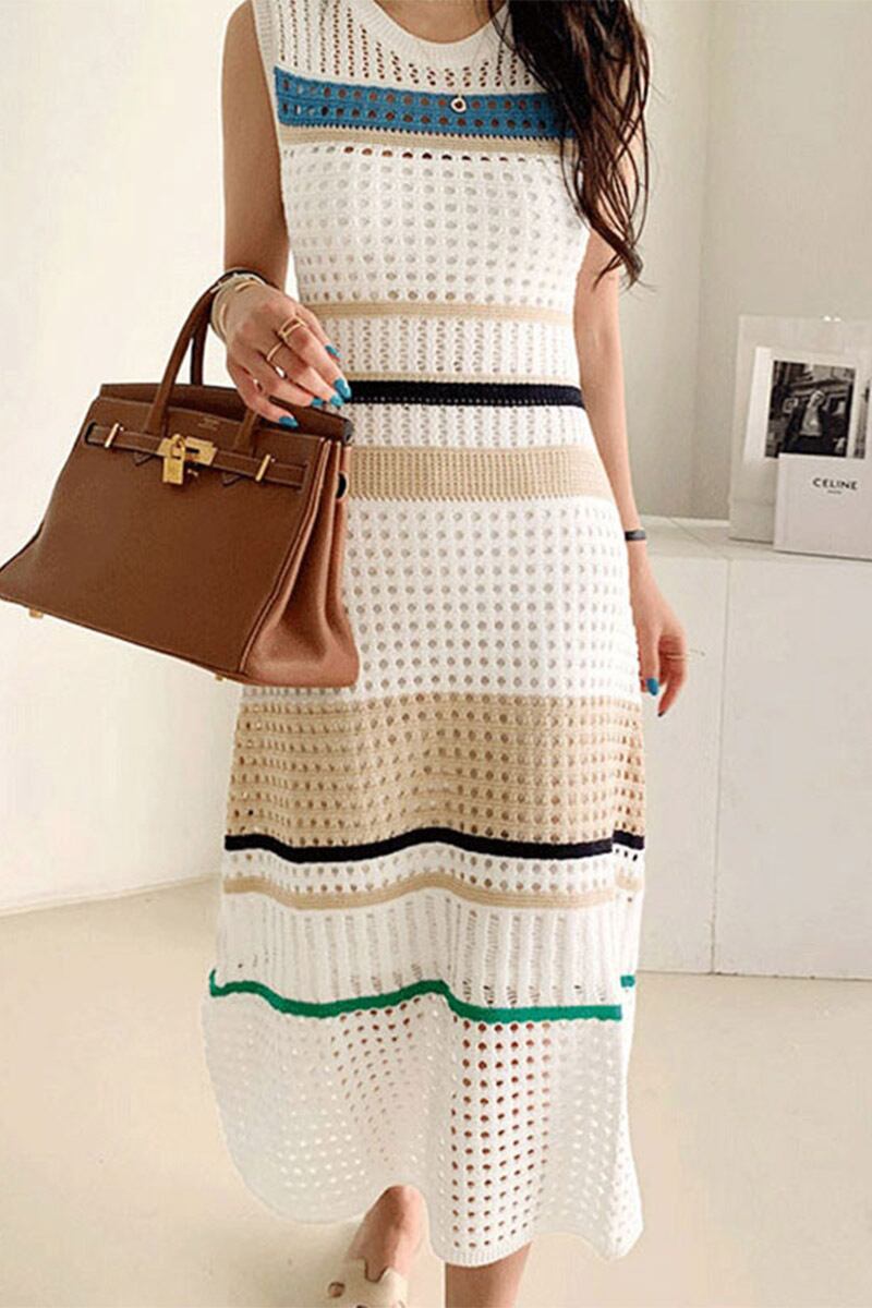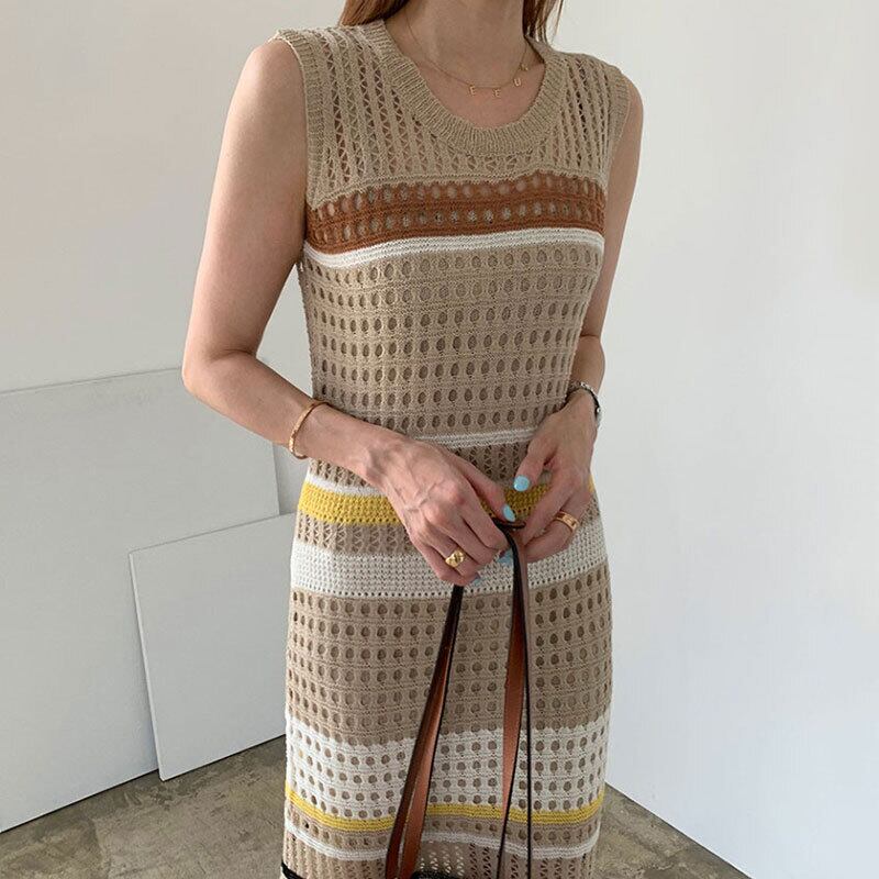 ワンピース ニットワンピース 膝下 ロング ロング丈 ノースリーブ ラウンドネック スクープネック ストレート ハイウエスト ニット ビスコース かわいい 大人可愛い きれいめ シンプル カジュアル 大人 上品 おしゃれ かっこいい レトロ アジアン 大人可愛い 大人女子 こなれ感 ラフ キュート ガーリー モード系 フォーマル 無地 柄 ストライプ 春 夏 レディース デート お出かけ 休日 着回し 普段使い 重ね着 お揃い 韓国 韓国系 オルチャン ファッション スタイル モテ 美脚 脚長 サイズ | ATAOI