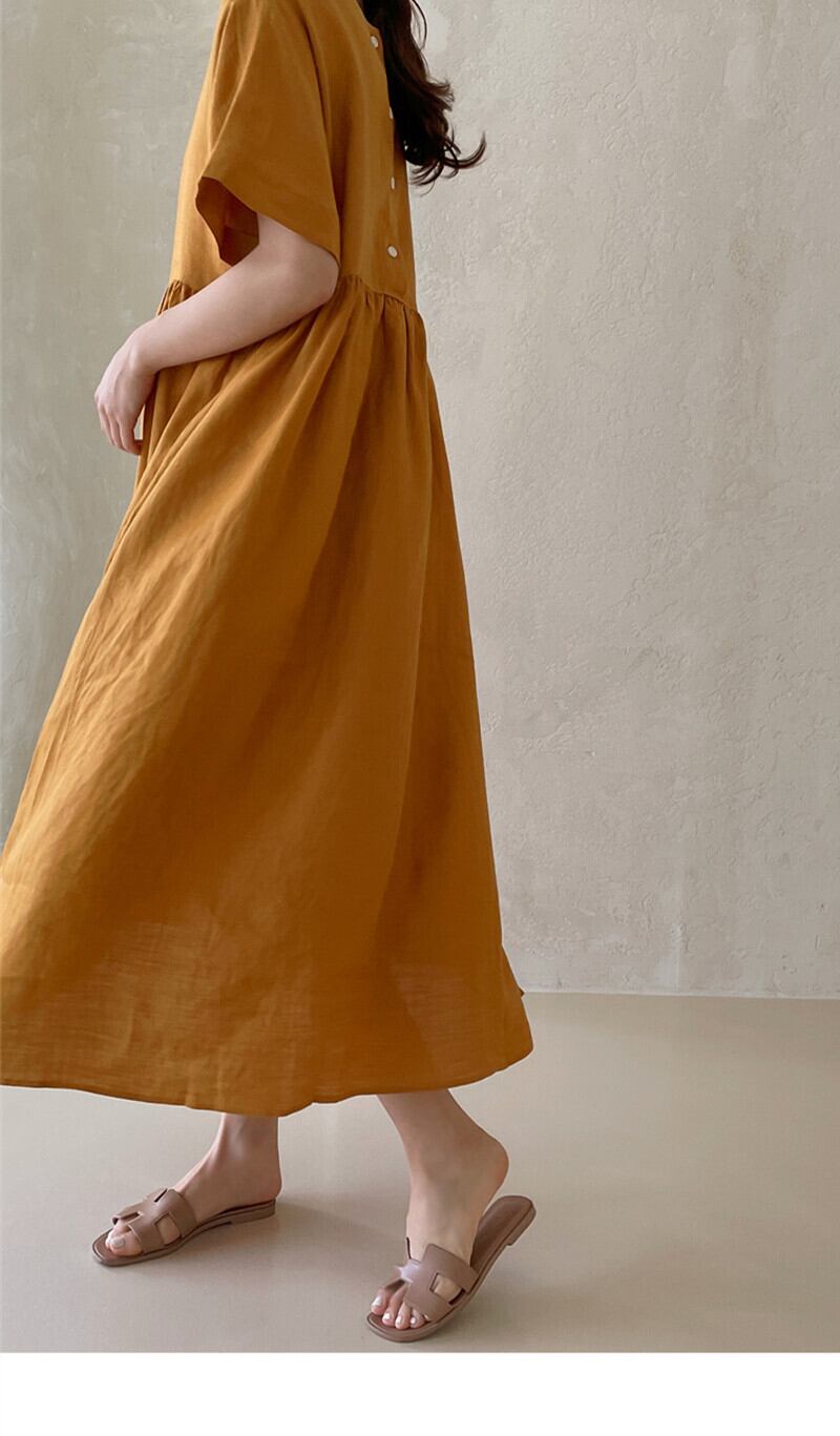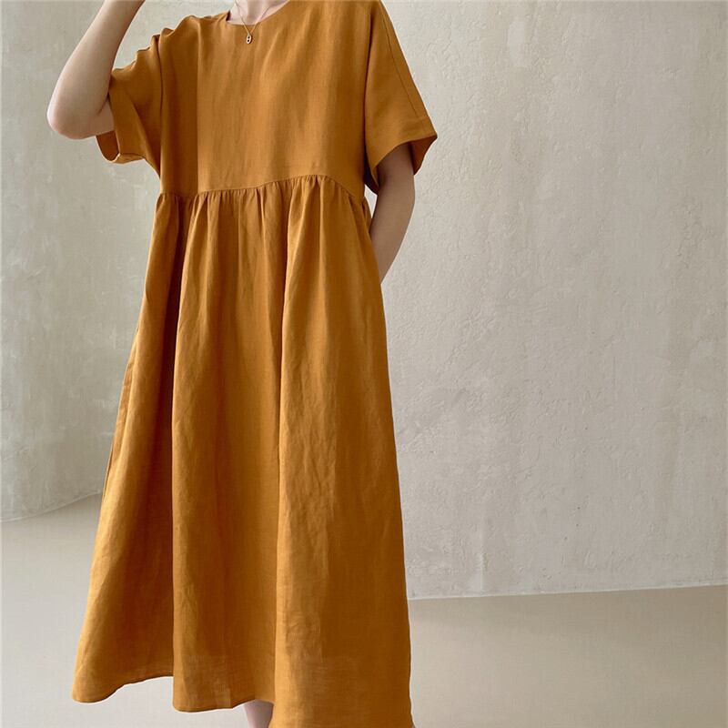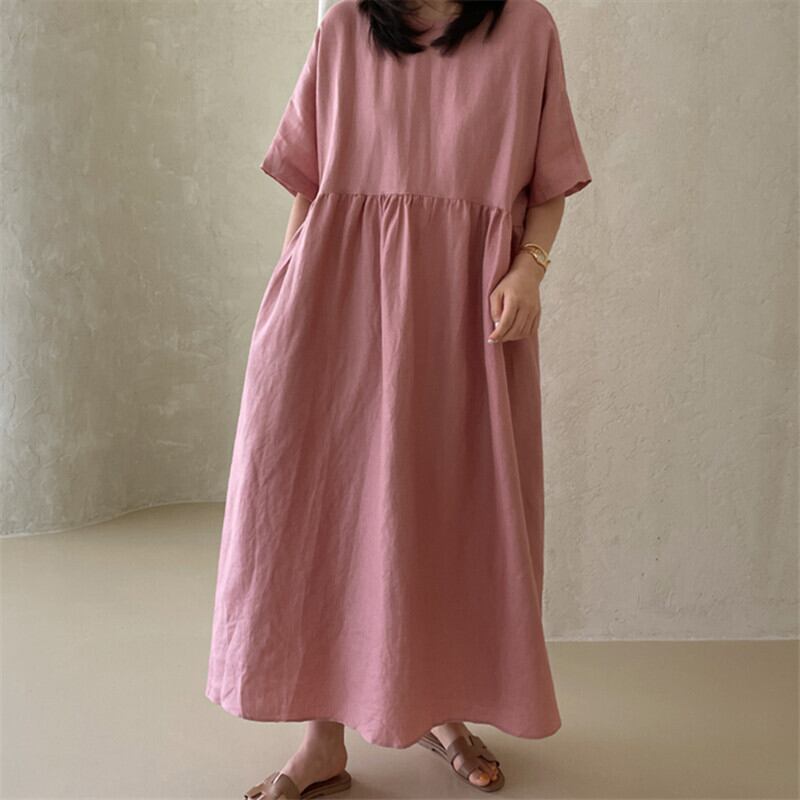ワンピース リネンワンピース ロング丈 ポケット 袖あり 半袖 後ろボタン 襟なし ラウンドネック プルオーバー ルーズフィット 体型カバー 楽ちん レトロ 大人可愛い シンプル おしゃれ キュート カジュアル 無地 春 夏 秋 10代 20代 30代 40代 レディース 女子用 イベント 学生 OL 通勤 通学 デート 休日 お出かけ ショッピング リゾート ホテル 旅行 オルチャンファッション カジュアルコーデ トレンド サイズ S M L XL カラー 色 ピンク テラコッタ | ATAOI