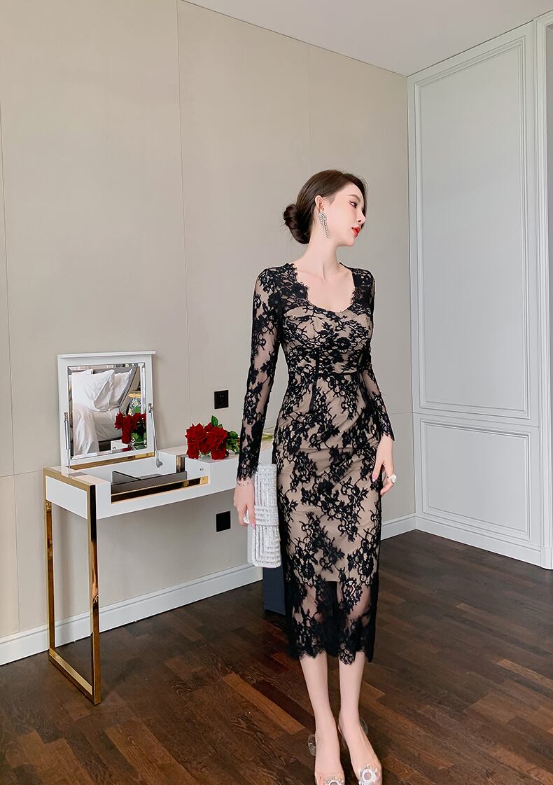 ワンピース オールインワン ロングスカート フレアスカート フレアワンピース ワンピドレス ひざ丈 ロング丈 袖あり 長袖 Vネック セミフレア Aライン レース 刺繍 透け感 シースルー 大人可愛い きれいめ シンプル 大人 上品 おしゃれ かっこいい 大人女子 クール モード系 セクシー エレガント 主役級 存在感 フォーマル 無地 春 夏 秋 冬 レディース ママ マタニティ デート 女子会 パーティー イベント モテ 流行 インスタ映え S M L ブラック | ATAOI