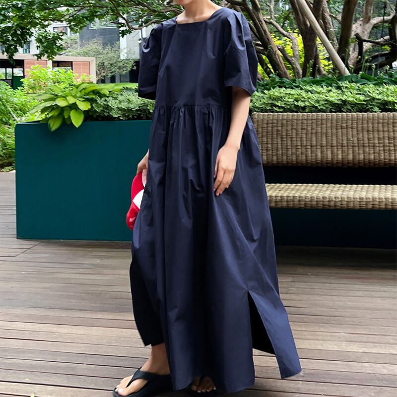 ワンピース ロングワンピース ロング ロング丈 袖あり 半袖 パワーショルダー スクエアネック 襟なし ワイド Aライン 切り替えデザイン サイドスリット 切り替えデザイン 2way ボタン かわいい 大人可愛い きれいめ シンプル 大人 上品 おしゃれ かっこいい 大人女子 こなれ感 ラフ 個性的 クール モード系 エレガント モダン 主役級 存在感 抜け感 無地 夏 20代 30代 40代 OL 学生 デート お出かけ 休日 着回し 普段使い ファッション コーデ スタイル 楽ちん 体系カバー | ATAOI