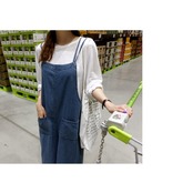 ゆったりめのオーバーオールは裾をロールアップして調整すれば