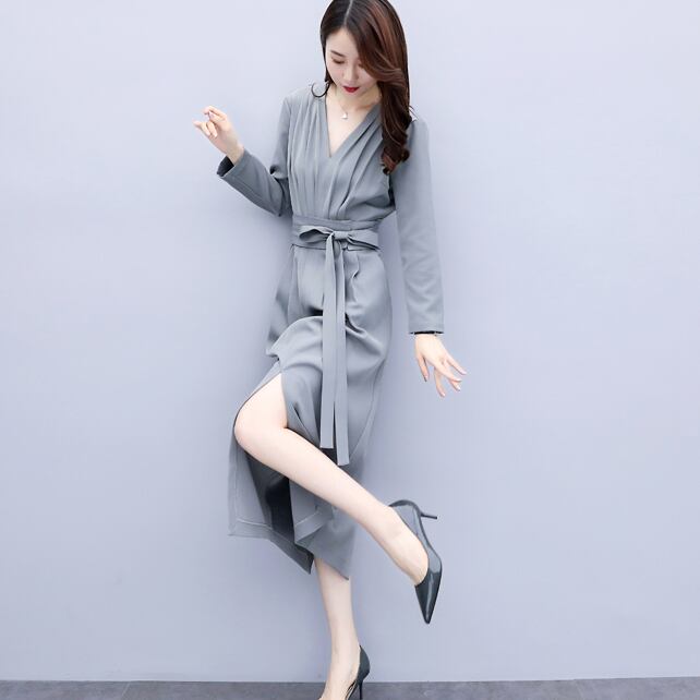 ドレス 衣装 パーティードレス 結婚式ドレス 二次会ドレス ミドル丈 長袖 Vネック リボン ウエストマーク ウエストリボン スリット 大人可愛い きれいめ シンプル 大人 上品 おしゃれ お洒落 かっこいい 大人女子 こなれ感 クール モード系 セクシー エレガント 存在感 ナチュラル かっこいい 無地 10代 20代 30代 40代 50代 パーティー イベント ホテル 美脚 脚長 モテ 高見え 格上げ 結婚式 二次会 2次会 1.5次会 S M L XL 2XL 色展開 黒 ブラック 灰色 グレー | ATAOI