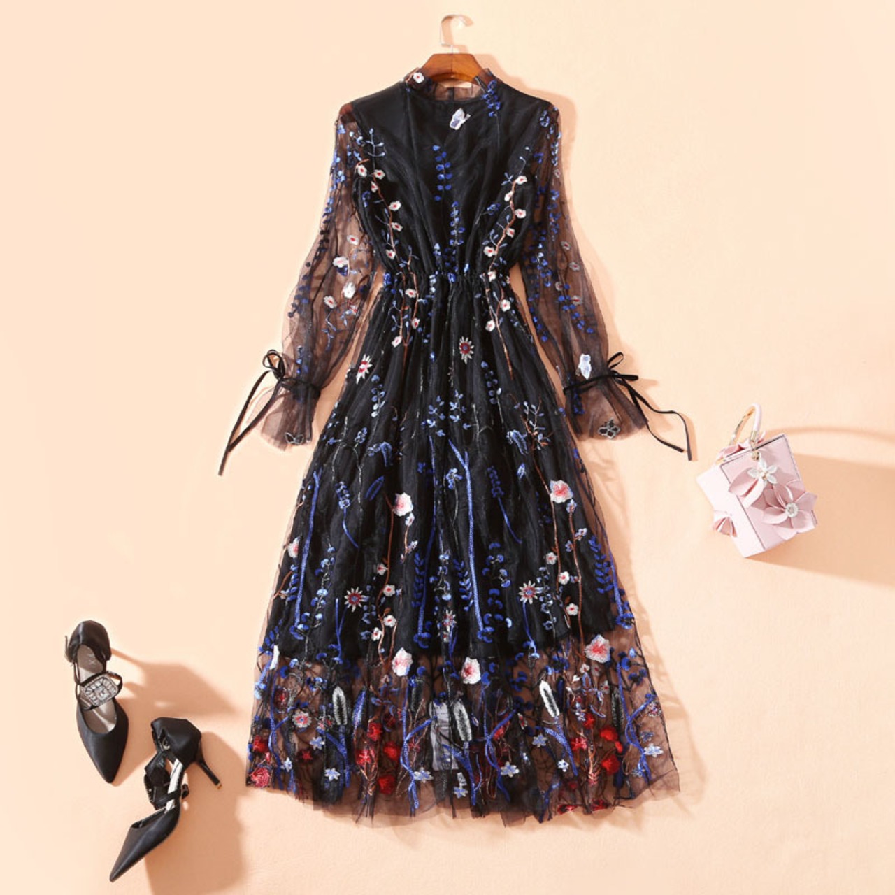 ワンピース フレア ロング ロング丈 袖あり 長袖 Vネック レース シフォン フリル リボン ウエストマーク 透け感 かわいい きれいめ カジュアル 上品 おしゃれ 大人可愛い こなれ感 ラブリー キュート とろみ感 抜け感 花柄 春 秋 謝恩会 二次会 披露宴 20代 30代 40代 レディース 女性用 デート お出かけ お泊まり 休日 パーティー イベント リゾート ホテル ショッピング 着回し 普段使い 楽ちん モテ S M L XL 2XL 3XL 4XL | ATAOI