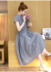 チャイナ風 ワンピース 膝下 ミモレ ミモレ丈 袖あり フレンチスリーブ フレア ウエストマーク かわいい おとなかわいい カジュアル おしゃれ お洒落 大人可愛い ガーリー ストライプ 夏 20代 30代 40代 レディース 女性用 学生 通学 デート お出かけ 普段使い ファッション 楽ちん サイズ M L XL 2XL 3XL 大きいサイズ 色展開 青 ブルー 緑 グリーン 灰色 グレー ベージュ | ATAOI