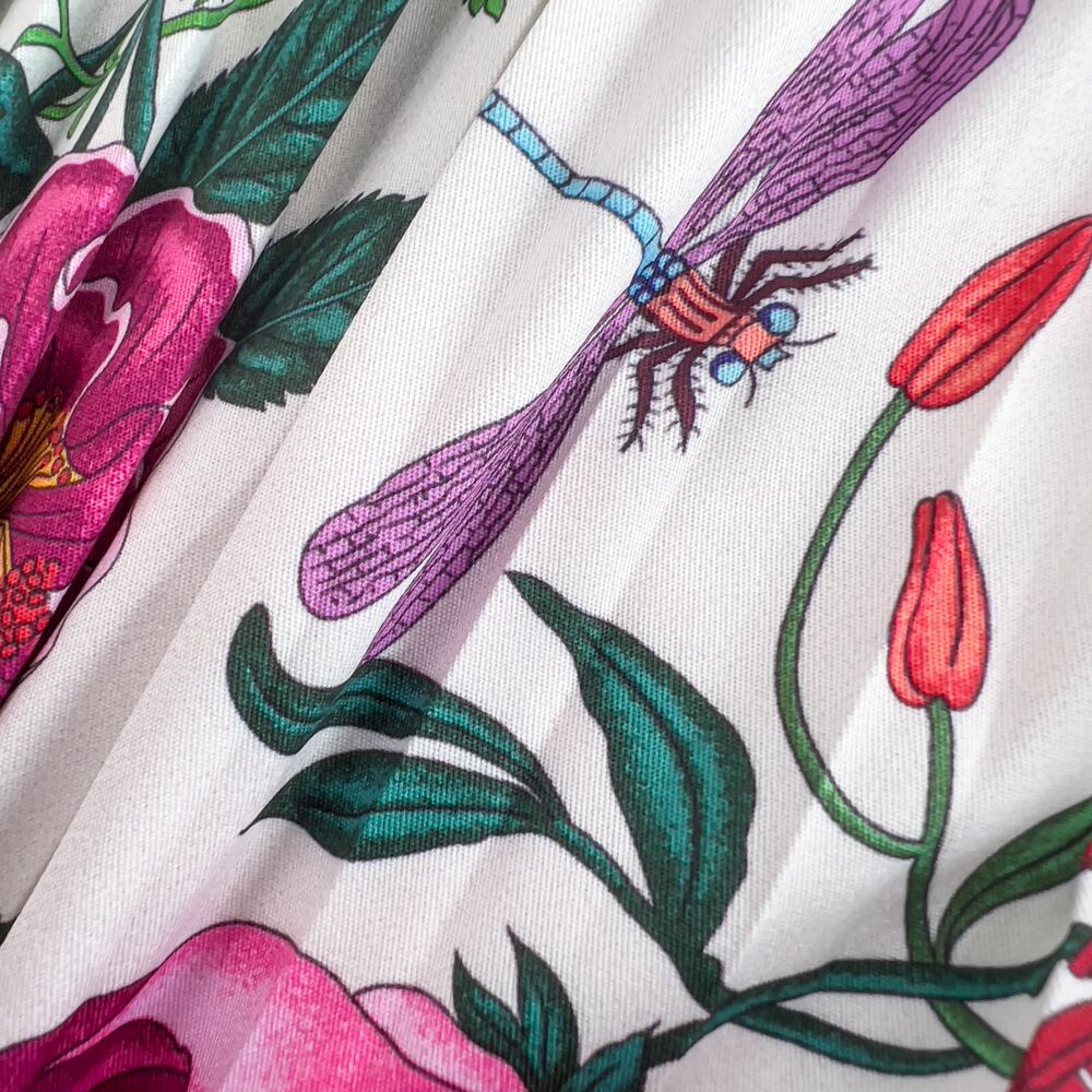 色とりどりの花柄プリントがエレガントなワンピースです。