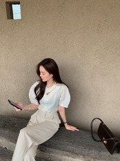 トップス シャツ 半袖 パフスリーブ Uネック ラウンドネック かわいい 大人可愛い きれいめ シンプル カジュアル 大人 上品 おしゃれ お洒落 レトロ 大人女子 こなれ感 ラフ キュート ルーズ 個性的 クール モード系 セクシー エレガント フェミン 無地 春 夏 10代 20代 30代 40代 デート お出かけ 公園 女子会 休日 ショッピング 普段使い 流行 インスタ映え サイズ フリーサイズ 色展開 白 ホワイト 灰色 グレー ネイビー 大人カラー | ATAOI