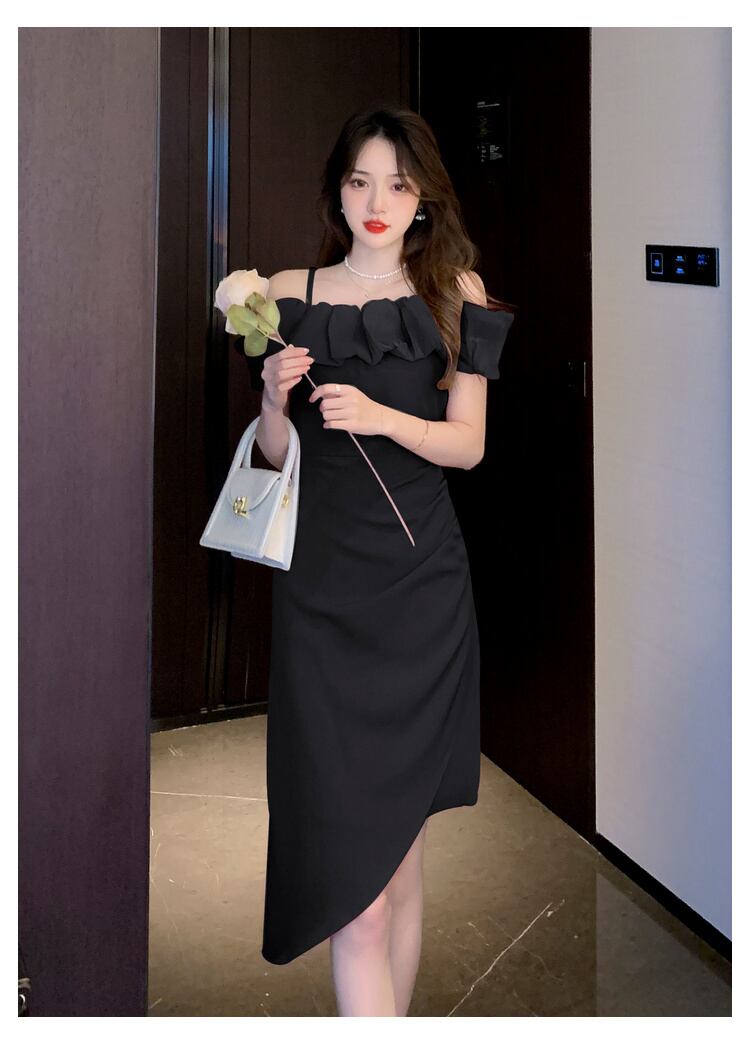 オフショルダーワンピース 裾アシンメトリー ワンピース ドレス パーティードレス ひざ丈 オフショルダー オフショル ストラップ アシンメトリー かわいい おとなかわいい きれいめ 大人 上品 おしゃれ お洒落 大人可愛い 大人女子 セクシー 無地 夏 結婚式 二次会 披露宴 20代 30代 レディース 女性用 パーティー イベント ファッション サイズ S M L XL 2XL 色展開 黒 ブラック ピンク | ATAOI