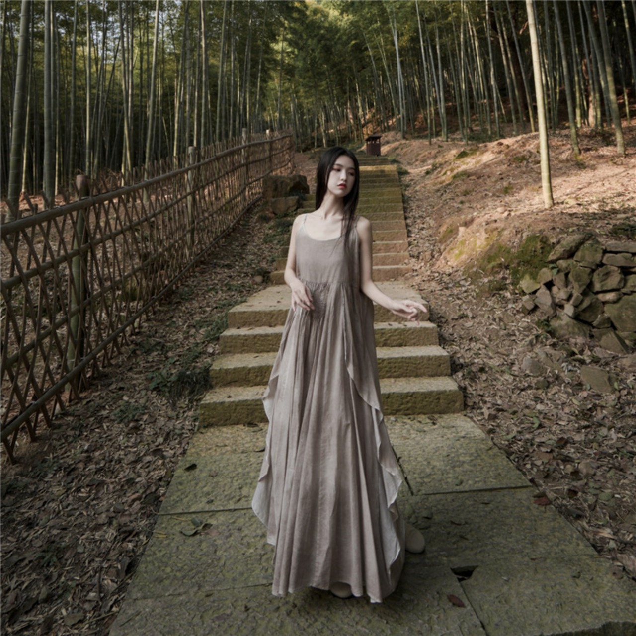ワンピース サスペンダーワンピース ロング ロング丈 袖なし ドロップショルダー サスペンダー ラウンドネック フレア スリム 細身 Aライン 切り替えデザイン フリル ハイウエスト 薄手 きれいめ シンプル 大人 上品 エキゾチック 大人女子 個性的 クール モード系 セクシー エレガント モダン 主役級 存在感 フォーマル 抜け感 無地 夏 20代 30代 レディース 女性用 デート お出かけ 休日 パーティー イベント ホテル ガーデン レストラン ファッション コーデ スタイル モテ 体系カバー | ATAOI