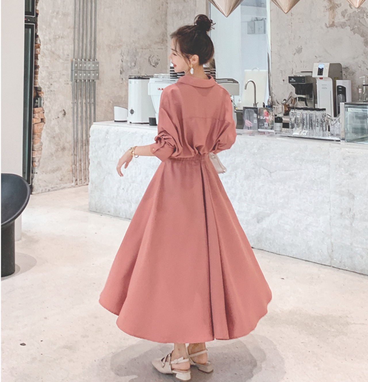 ワンピース フレアワンピース ロング ロング丈 袖あり シャツスリーブ スキッパーカラー フレア スリム ハイウエスト ボタン 薄手 かわいい 大人可愛い きれいめ 大人 上品 おしゃれ 大人女子 こなれ感 モード系 エレガント モダン 主役級 存在感 とろみ感 抜け感 無地 春 秋 20代 30代 レディース ママ OL 通勤 デート お出かけ 休日 イベント ホテル ガーデン レストラン 普段使い ファッション コーデ スタイル モテ 体系カバー 新作 定番 トレンド 流行 インスタ映え イメチェン | ATAOI