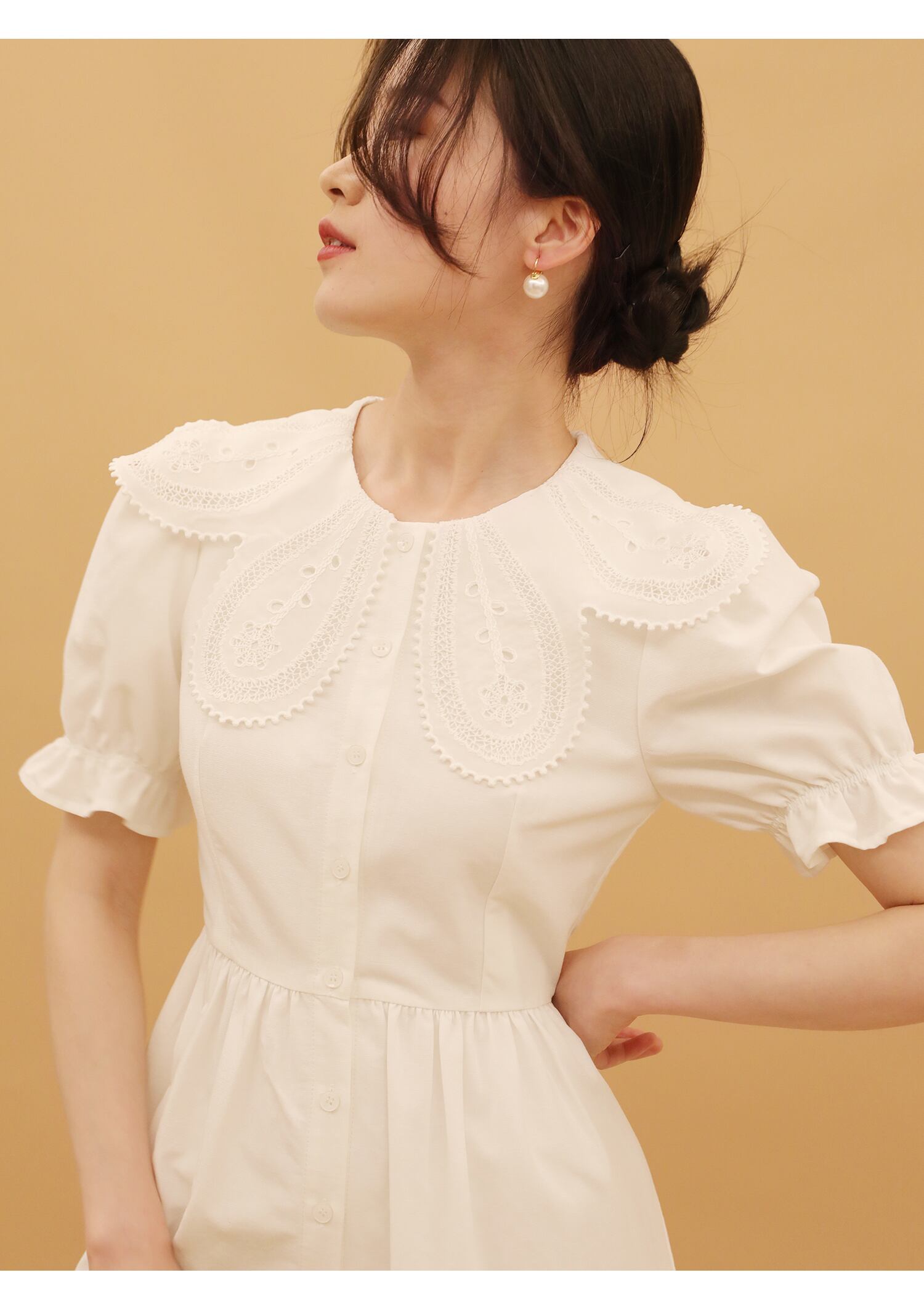 レースの襟がとてもかわいいロングワンピース。