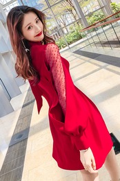 韓国風セクシーなシースルーステッチの袖のワンピースドレス。
