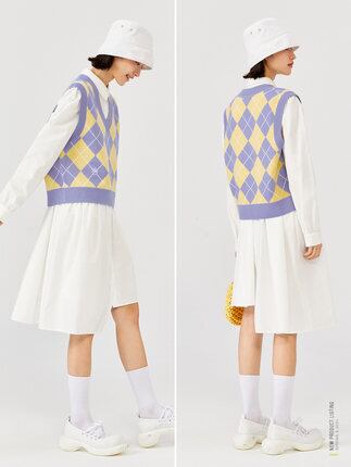 トップス ニットベスト ダイヤ柄 袖なし ノースリーブ プルオーバー Vネック 楽ちん ゆったり ルーズフィット 体型カバー 楽ちん レトロ 大人可愛い シンプル おしゃれ キュート カジュアル 無地 柄 春 秋 冬 10代 20代 30代 40代 レディース 女子用 イベント 学生 OL 通勤 通学 デート 休日 お出かけ 公園 ショッピング リゾート ホテル 旅行 オルチャンファッション カジュアルコーデ トレンド 大きいサイズ サイズ XL カラー イエローパープル | ATAOI