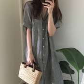 ワンピース シャツワンピース ロング ロング丈 半袖 Vネック 襟付き 前開き かわいい 大人可愛い シンプル カジュアル おしゃれ お洒落 大人女子 こなれ感 ラフ ルーズ 主役級 存在感 柄 ボーダー ストライプ 春 夏 10代 20代 30代 40代 デート お出かけ 公園 女子会 休日 ショッピング 着回し 普段使い 韓国 ファッション スタイル 楽ちん 体系カバー サイズ S M L XL 2XL 大きいサイズ | ATAOI