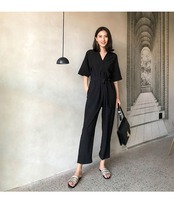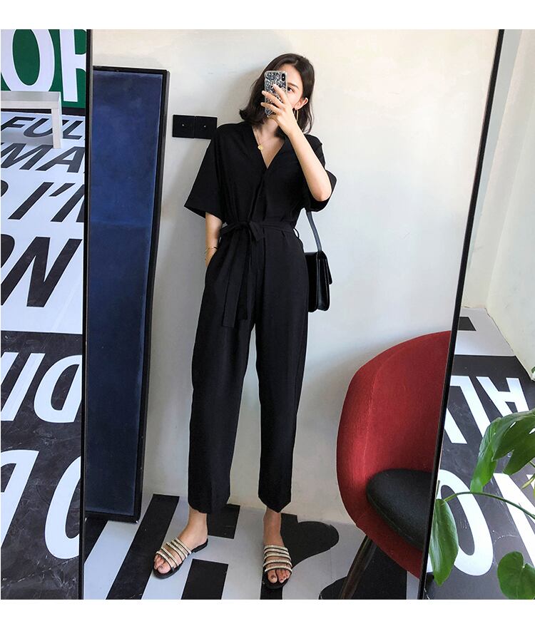 ジャンプスーツ オールインワン ロング ロング丈 半袖 Vネック ウエストマーク ウエストリボン 大人可愛い きれいめ シンプル 大人 上品 おしゃれ お洒落 かっこいい 大人女子 こなれ感 クール モード系 セクシー 主役級 存在感 無地 春 夏 10代 20代 30代 40代 女子会 休日 ショッピング 普段使い スタイル 楽ちん 体系カバー 脚長 サイズ S M L XL 黒 ブラック | ATAOI