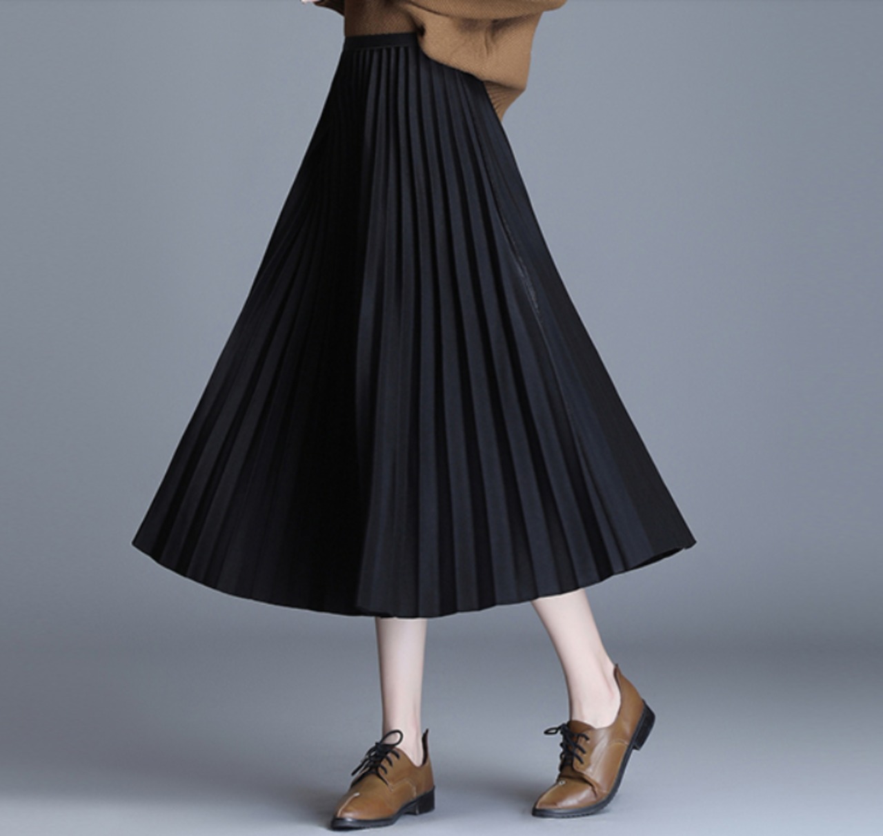 秋冬にぴったりなAラインプリーツミモレ丈スカート。