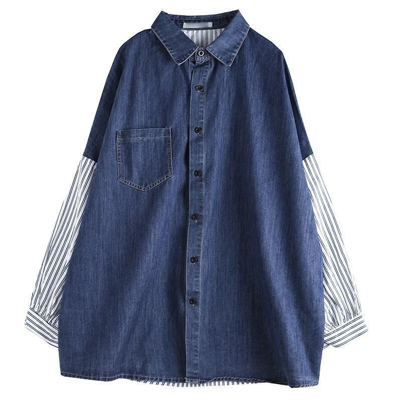 トップス シャツ ブラウス 袖あり 長袖 襟付き ストレート ワイド 切り替えデザイン ドッキング ポケット 前開き デニム ブルーデニム かわいい 大人可愛い カジュアル 大人 おしゃれ お洒落 かっこいい 大人女子 こなれ感 ラフ メンズライク ボーイッシュ スポーティー ルーズ 個性的 クール 主役級 無地 ストライプ 春 夏 秋 冬 10代 20代 30代 レディース 女性用 学生 通学 休日 アウトドア普段使い 楽ちん 体系カバー 大きいサイズ 大きい ゆったり ゆる 青 ブルー | ATAOI