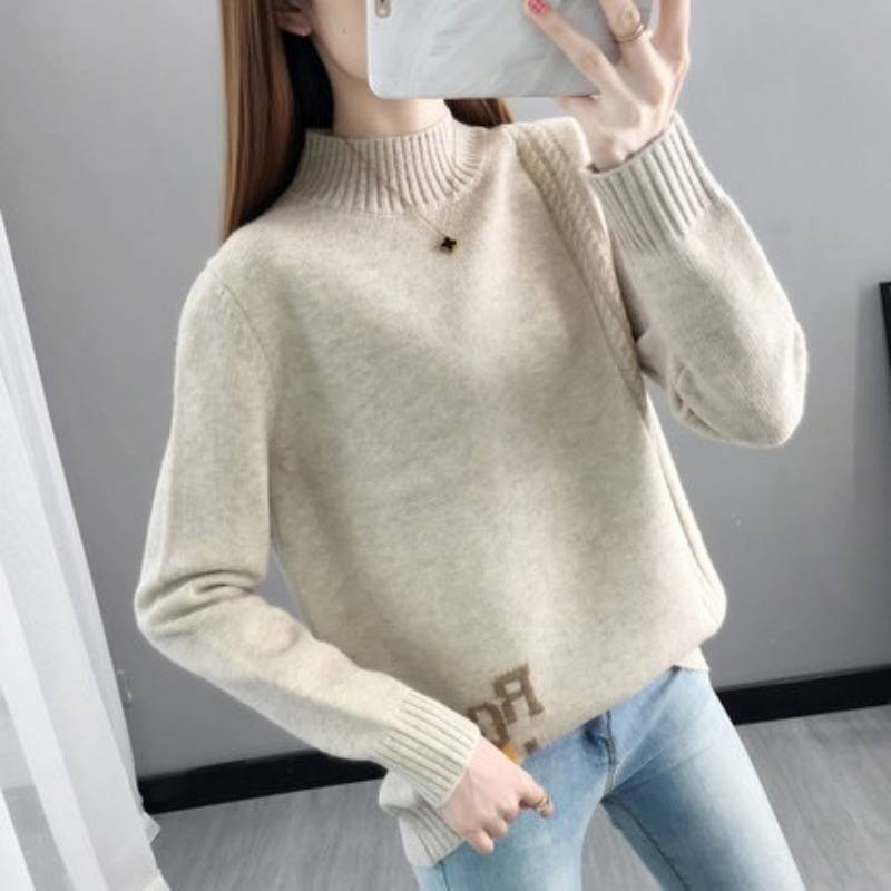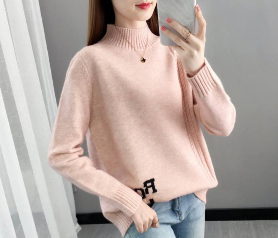 トップス ニットソー セーター プルオーバー 袖あり 長袖 ハイネック ケーブルニット ニット かわいい 大人可愛い シンプル カジュアル 大人 上品 おしゃれ お洒落 大人女子 こなれ感 ボーイッシュ キュート 個性的 エレガント 抜け感 フェミニン ベーシック プレッピー ロゴ 秋 冬 10代 20代 30代 40代 レディース 女性用 デート お出かけ 普段使い 暖かい モテ S M L XL 2色展開 ピンク アプリコット | ATAOI