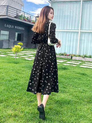 Aラインワンピース ブラック ブラウン 春 秋 大きいサイズ 小さいサイズ ワンピース ロングワンピース 膝下 ロング ロング丈 袖あり 長袖 Vネック フレア フリル リボン ウエストマーク ハイウエスト かわいい 大人可愛い きれいめ 大人 上品 おしゃれ お洒落 清楚 大人女子 ガーリー エレガント 爽やか スマート 柄 10代 20代 30代 40代 レディース 女性用 女の子 学生 デート お出かけ 女子会 休日 イベント レストラン お呼ばれ お茶会 ランチ ショッピング 着回し 普段使い | ATAOI
