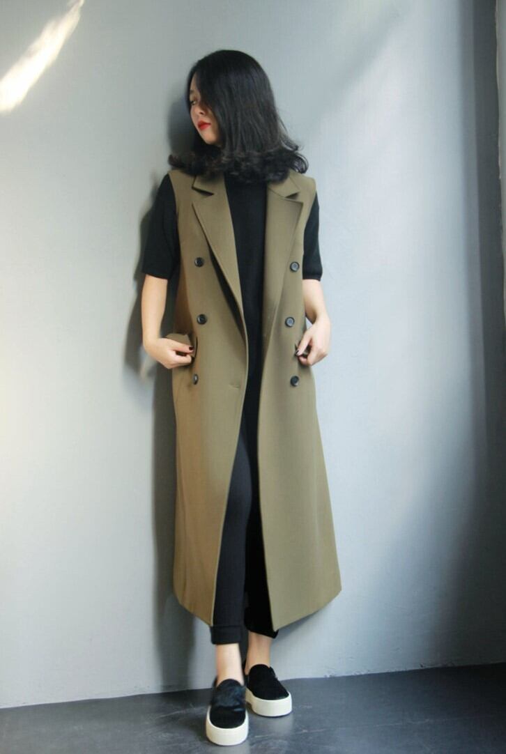 アウター トップス ロング丈ベスト ダブルブレスト スーツ襟 Vネック 前ボタン 後ろスリット モダン クール スリムフィット 体型カバー レトロ 大人可愛い シンプル おしゃれ かっこいい エレガント 無地 春 秋 10代 20代 30代 40代 レディース 女子用 イベント 学生 OL 通勤 通学 デート 休日 お出かけ レストラン ショッピング リゾート ホテル 旅行 オルチャンファッション 上品コーデ 大きいサイズ S M L XL 2XL 3XL カラー グリーン ブラック | ATAOI