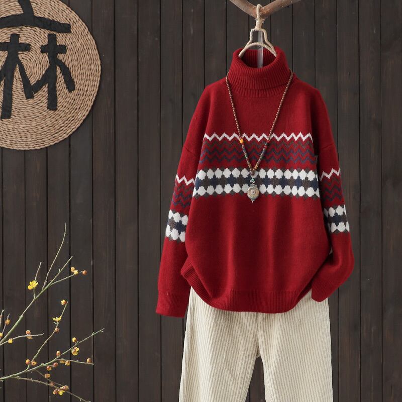 トップス ニットソー セーター 長袖 タートルネック ストレート もこもこ モコモコ 編み込み ニット かわいい 大人可愛い きれいめ シンプル カジュアル 大人 おしゃれ お洒落 レトロ ラフ 主役級 存在感 柄 秋 冬 10代 20代 30代 40代 50代 お出かけ 公園 休日 ショッピング 普段使い スタイル 楽ちん 暖かい サイズ フリーサイズ ワンサイズ 色展開 赤 レッド 茶色 ブラウン ベージュ ネイビー 大人カラー 秋カラー | ATAOI