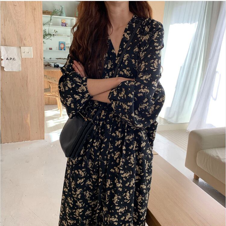 ワンピース 花柄ワンピース ロング丈ベルベッドワンピース 袖あり 長袖 襟なし Vネック プルオーバー ゆったり ルーズフィット 体型カバー 楽ちん レトロ 大人可愛い シンプル おしゃれ キュート カジュアル 花柄 秋 冬 10代 20代 30代 40代 レディース 女子用 イベント 学生 OL 通勤 通学 デート 休日 お出かけ レストラン ショッピング リゾート ホテル 旅行 オルチャンファッション カジュアルコーデ トレンド サイズ S M L XL カラー ブラック | ATAOI