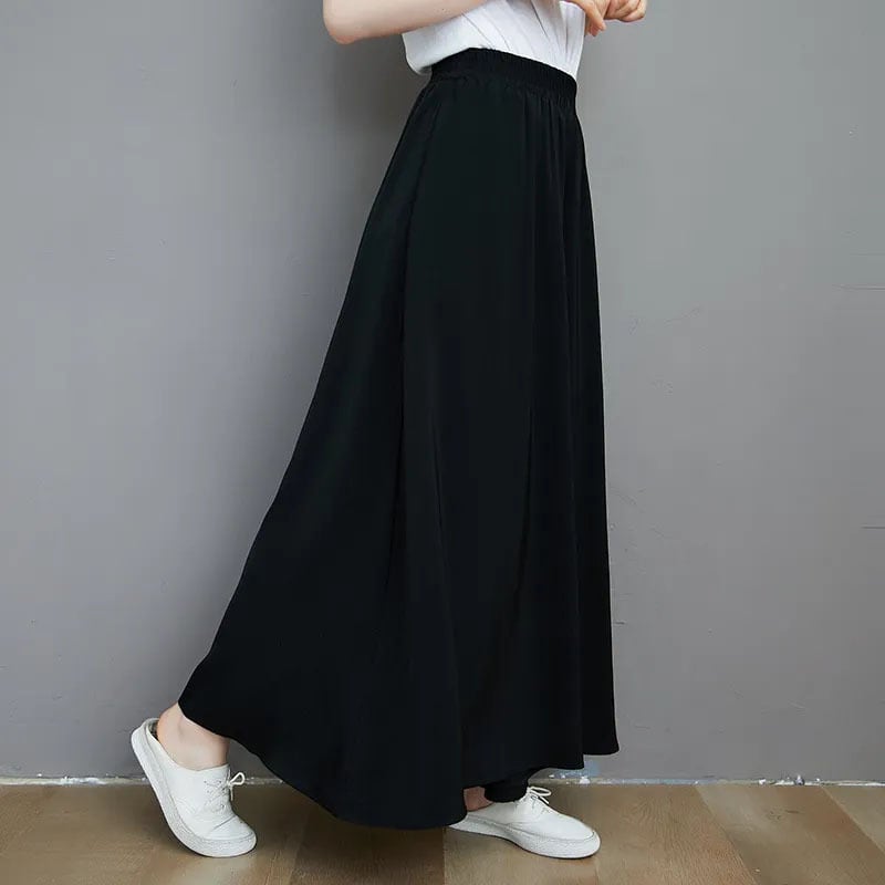 スカート ロングスカート ロング ロング丈 フレア ワイド 大人可愛い シンプル カジュアル 大人 大人可愛い 大人女子 こなれ感 ラフ ラブリー クール とろみ感 抜け感 無地 春 夏 秋 10代 20代 30代 レディース 女性用 通勤 学生 通学 お出かけ ショッピング ランチ 公園デビュー 女子会 着回し 普段使い 楽ちん 体系カバー サイズ L XL 2XL 3XL 4XL 大きいサイズ 大きい 大きめ ビッグサイズ ゆったり ゆる 黒 ブラック | ATAOI