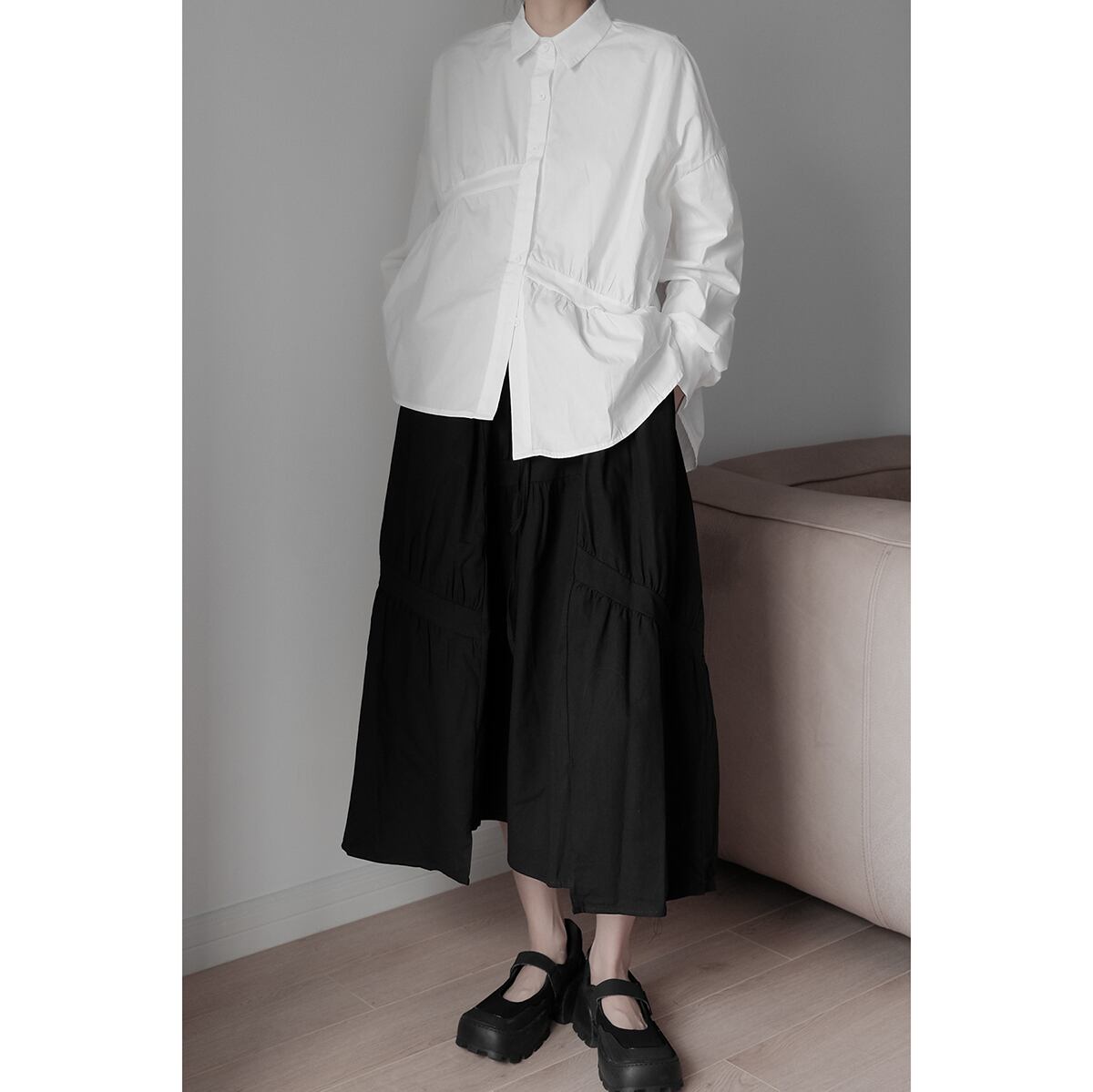 アシンメトリー 左右非対称 トップス シャツ ブラウス 白シャツ 白トップス 袖あり 半袖 長袖 襟付き ストレート Aライン 切り替えデザイン 前開き 綿 かわいい 大人可愛い シンプル カジュアル 大人 おしゃれ お洒落 大人女子 こなれ感 ラブリー キュート ガーリー 個性的 クール モード系 モダン 主役級 存在感 無地 春 秋 10代 20代 30代 40代 50代 60代 レディース 女性用 オフィス OL 通勤 学生 通学 デート お出かけ 休日 普段使い 韓国 白 ホワイト 黒 ブラック | ATAOI