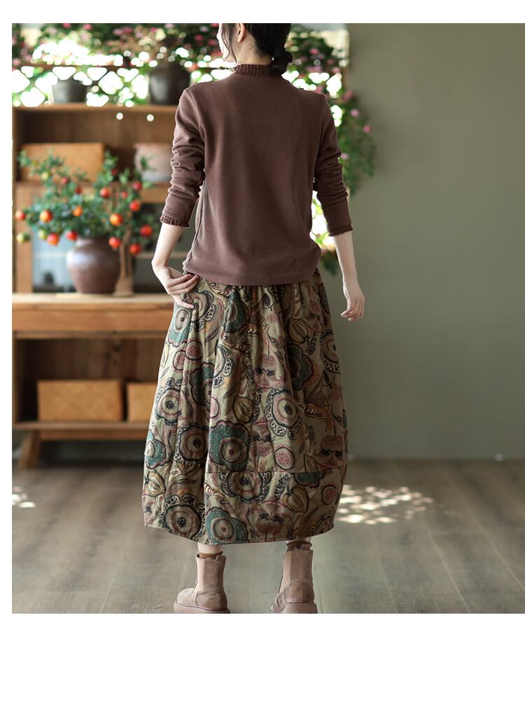 ボトムス ミモレ丈スカート コットンスカート Aライン フレアスカート ウエストゴム ルーズフィット 体型カバー 厚みあり スタイル レトロ 花柄 モダン 大人可愛い かっこいい シンプル おしゃれ ナチュラル カジュアル プリント柄 秋 冬 10代 20代 30代 40代 レディース 女子用 イベント 学生 OL 通勤 通学 デート 休日 お出かけ 公園 ショッピング レストラン リゾート ホテル 旅行 オルチャンファッション カジュアルコーデ トレンド サイズフリー カラー カーキ ネイビー | ATAOI