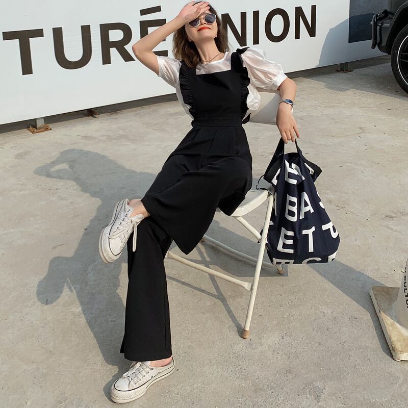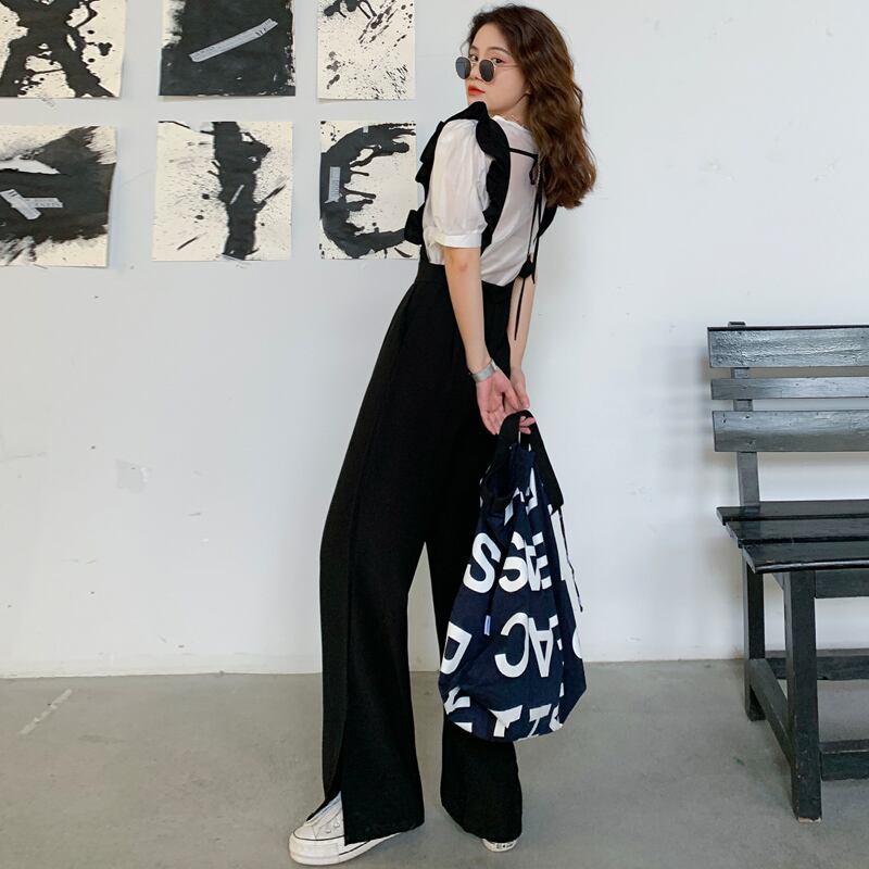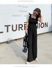 ブラックストラップパンツ ボトムス サロペット ズボン ワイドパンツ ノースリーブ スマート フリル ウエストマーク かわいい 大人可愛い カジュアル おしゃれ お洒落 かっこいい 大人可愛い 大人女子 ラブリー キュート 個性的 無地 春 秋 10代 20代 30代 40代 レディース 女性用 ママ 学生 通学 お出かけ 休日 着回し 普段使い ファッション コーデ スタイル サイズ S M L XL 色展開 黒 ブラック | ATAOI