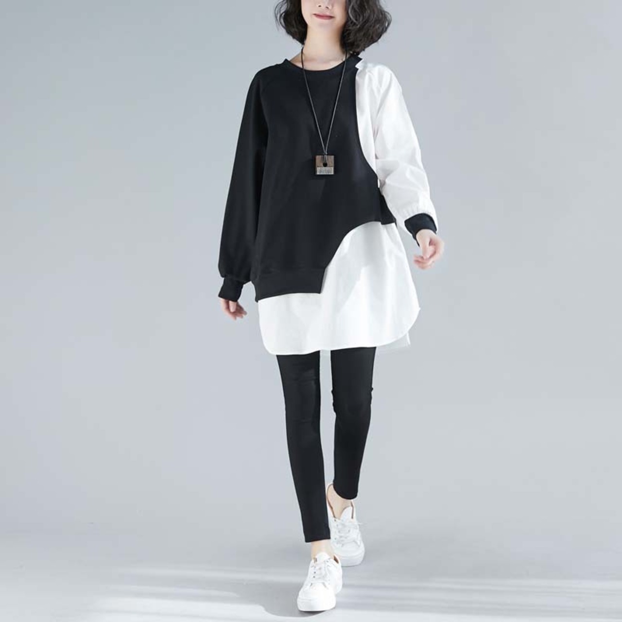 トップス Tシャツ プルオーバー トレーナー ミディアム丈 袖あり 長袖 ラウンドネック 襟なし ワイド アシンメトリー 切り替えデザイン ドッキング 薄手 異素材MIX トレーナー 大人可愛い カジュアル 大人 おしゃれ かっこいい 大人女子 こなれ感 ラフ マニッシュ ラブリー キュート ガーリー ルーズ 個性的 クール モード系 モダン 主役級 存在感 抜け感 無地 春 秋 10代 20代 レディース 女性用 学生 通学 デート お出かけ 休日 旅行 ファッション コーデ スタイル モテ 体系カバー | ATAOI