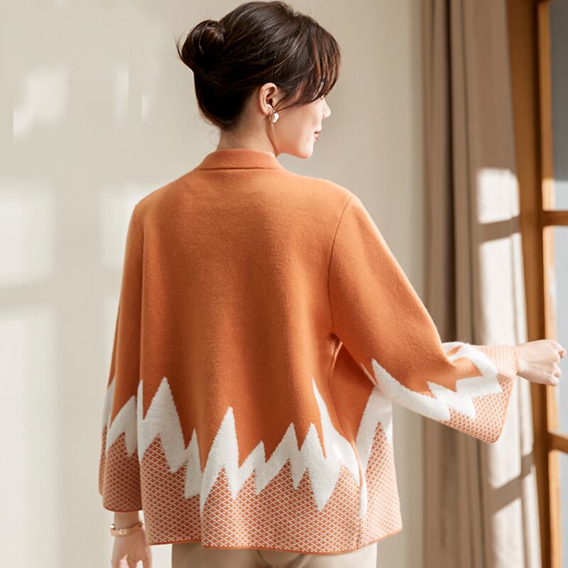 トップス セーター ミディアム丈 袖あり 長袖 ラウンドネック 襟なし ストレート ポケット 前開き ボタン ニット きれいめ シンプル 大人 上品 おしゃれ かっこいい レトロ 大人女子 こなれ感 ラフ 個性的 クール モード系 エレガント モダン 主役級 存在感 幾何学模様 秋 冬 20代 30代 40代 50代 レディース 女性用 OL 通勤 デート お出かけ 休日 ホテル ガーデン レストラン ファッション コーデ スタイル モテ 体系カバー 脚長 新作 定番 イメチェン 好感度 イメージアップ | ATAOI