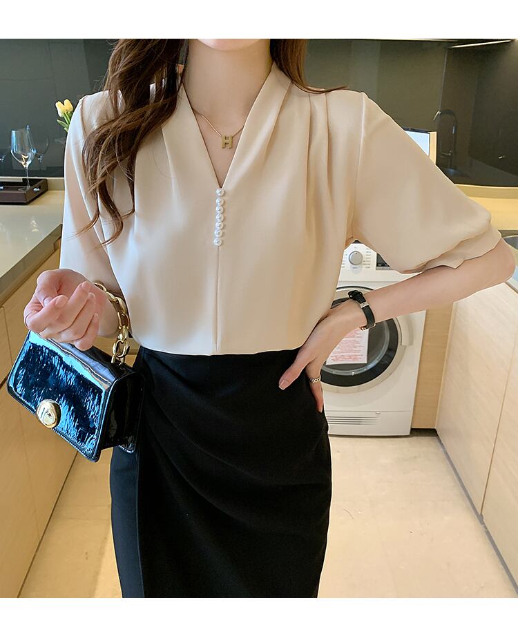 トップス シャツ ブラウス プルオーバー 白シャツ 袖あり 半袖 5分袖 五分袖 Vネック 襟なし ストレート シフォン ポリエステル かわいい 大人可愛い きれいめ シンプル 大人 上品 おしゃれ 大人女子 こなれ感 ラブリー キュート ガーリー セクシー エレガント 無地 夏 10代 20代 30代 40代 50代 60代 レディース 女性用 オフィス ビジネス OL 通勤 デート ホテル レストラン 韓国 S M L XL 2XL 白 ホワイト 緑 グリーン ベージュ | ATAOI