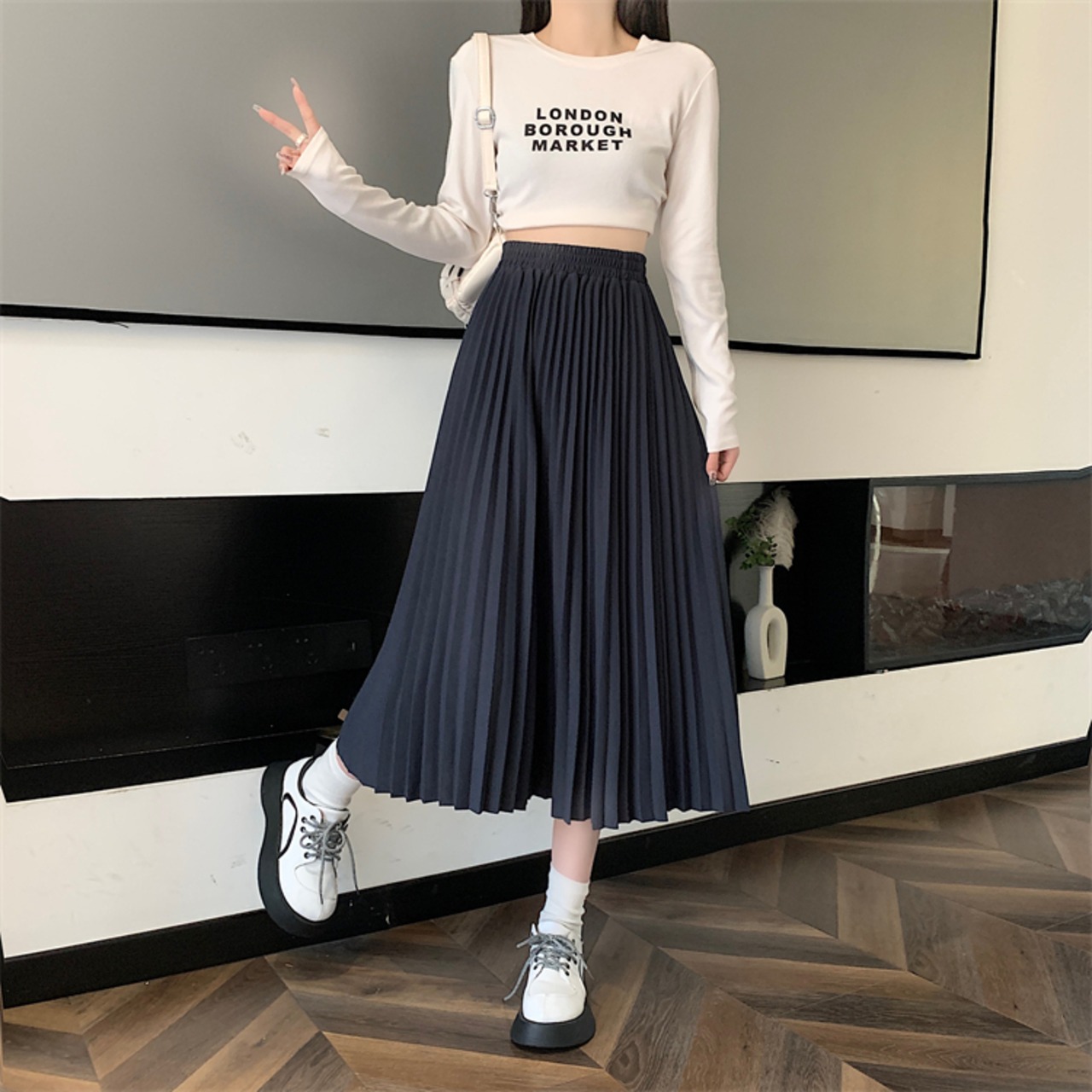 ひざ下丈のプリーツスカートです。
