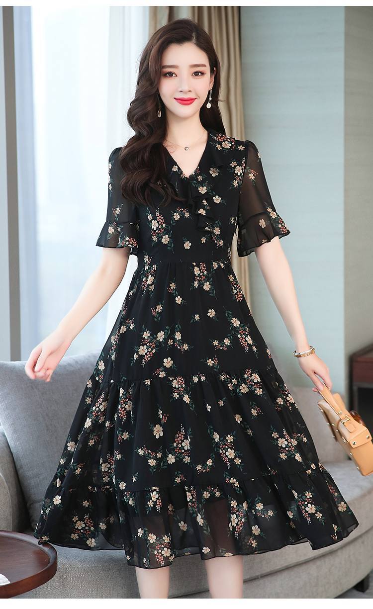 ワンピース フレアワンピース 膝丈 ひざ丈 膝下 袖あり 半袖 長袖 Vネック フレア Aライン シフォン ハイウエスト 透け感 シースルー かわいい 大人可愛い きれいめ 大人 上品 おしゃれ お洒落 清潔感 大人女子 ラブリー キュート ガーリー エレガント 抜け感 フェミニン ロマンチック 華やか 花柄 小花柄 フラワー 春 夏 秋 レディース デート お出かけ 普段使い モテ 体系カバー 美脚 脚長 大きいサイズ 大きめ ビッグサイズ プラスサイズ 黒 ブラック | ATAOI