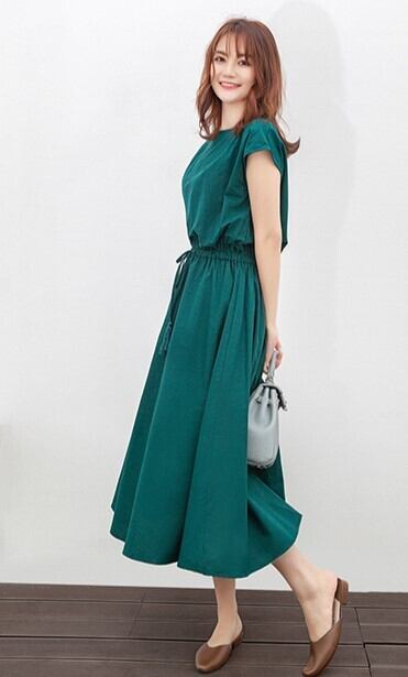 ワンピース フレアスカート ミドル丈 半袖 Uネック ウエストマーク プルオーバー ルーズフィット 無地 シック 上品 エレガント おしゃれ クール モダン 大人女子 ナチュラル ガーリー 春 夏 イベント 10代 20代 30代 40代 レディース 女性用 お出かけ デートショッピング ホテル レストラン リゾート 旅行 海 オルチャンファッション カジュアルコーデ サイズ M L XL 2XL カラー アーミー グリーン 水色 ネイビー アプリコット ブラック オレンジ ライトグリーン | ATAOI