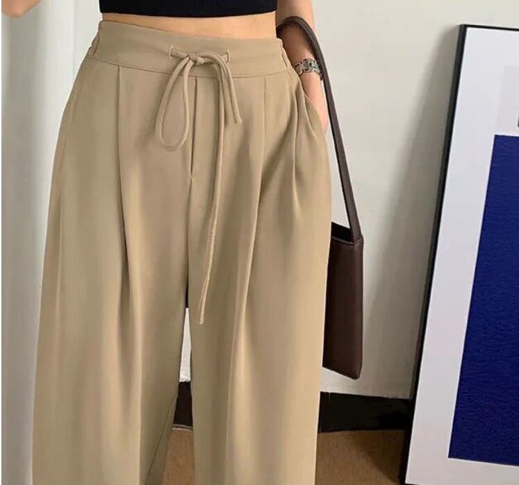 ワイドレッグパンツ。レディースハイウエスト、春と秋にぴったり。