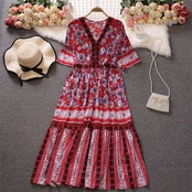ボヘミアンワンピース 夏 ロングワンピース 膝下 ロング ロング丈 マキシ マキシ丈 袖あり 半袖 Vネック 襟なし Aライン ウエストマーク ハイウエスト かわいい 大人可愛い 大人 おしゃれ お洒落 アジアン エスニック ラブリー キュート ガーリー 個性的 存在感 爽やか 柄 花柄 小花柄 フラワー 春 秋 ロングシーズン 10代 20代 30代 40代 レディース 女性用 学生 デート お出かけ 女子会 休日 イベント リゾート 旅行 海 着回し | ATAOI