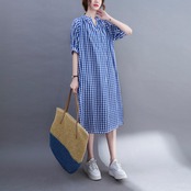 チェック柄ワンピース ブルー 大きいサイズ ワンピース ミモレ丈ワンピース 膝下 ミモレ ミモレ丈 袖あり 半袖 スタンドカラー スリットネック スリット サイドスリット ポケット かわいい カジュアル おしゃれ お洒落 ラフ ラブリー キュート ガーリー 存在感 爽やか 柄 チェック柄 格子柄 春 夏 ロングシーズン 10代 20代 30代 レディース 女性用 ママコーデ 学生 デート お出かけ 女子会 イベント お呼ばれ お茶会 ランチ ショッピング 着回し 普段使い 重ね着 モテ 体系カバー | ATAOI