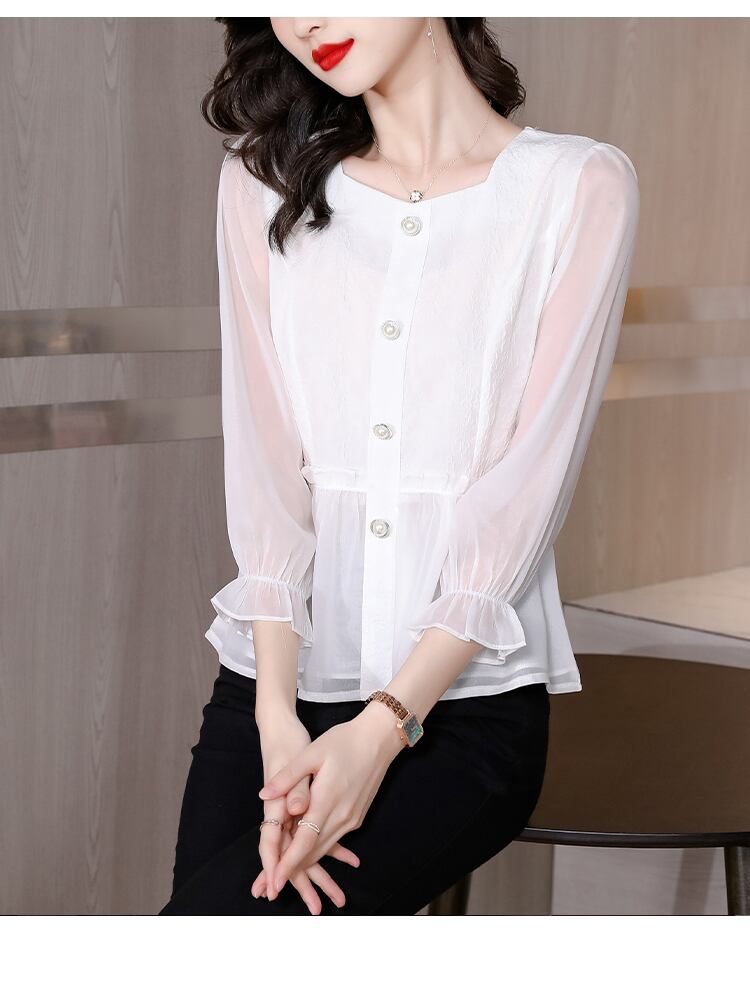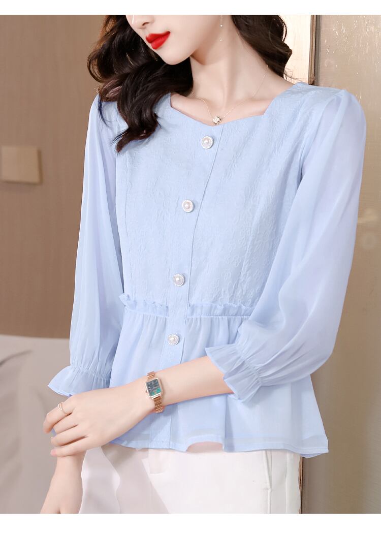 トップス シャツ ブラウス 白シャツ 白トップス 袖あり 7分袖 長袖 スクエアネック 襟なし ストレート ペプラム シフォン フリル ウエストマーク 透け感 ポリエステル かわいい 大人可愛い きれいめ シンプル 大人 上品 おしゃれ お洒落 大人女子 ラブリー キュート ガーリー 無地 春 夏 10代 20代 30代 40代 50代 60代 レディース 女性用 オフィス OL 通勤 デート 韓国 モテ M L XL 2XL 3XL 大きいサイズ 白 ホワイト 赤 レッド ピンク ライトブルー | ATAOI