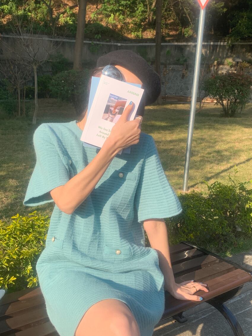 ゴールドボタンがきちんと感を出してくれるミニワンピです。