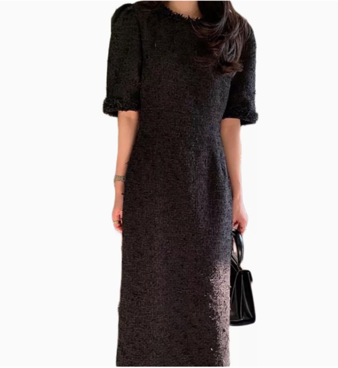 秋冬のスタイル。ツイードワンピース。ミモレ丈がおしゃれ。