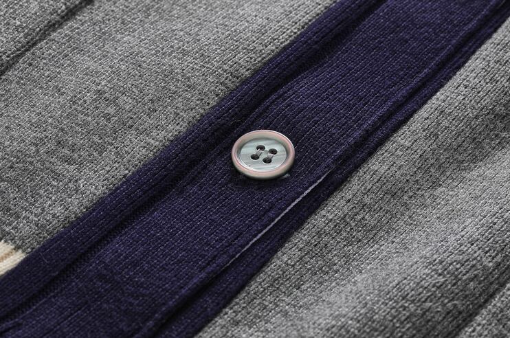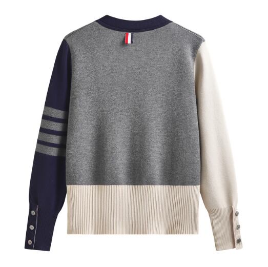 ちらりとのぞくトリコロールカラーがおしゃれなニットカーディガンです。