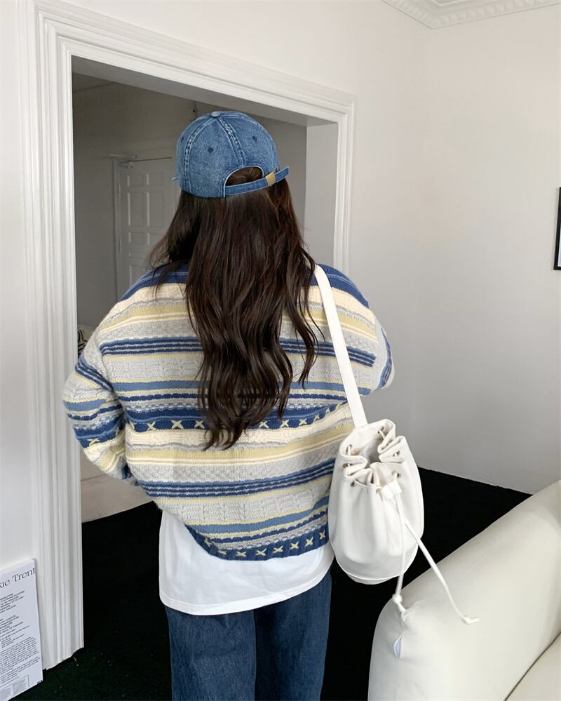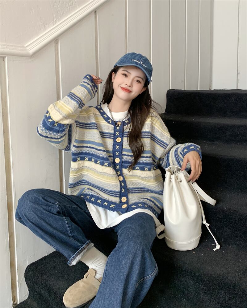 トップス アウター カーディガン 上着 袖あり 長袖 ラウンドネック クルーネック 襟なし ストレート 編み込み かわいい 大人可愛い カジュアル 大人 おしゃれ お洒落 レトロ 大人女子 こなれ感 ラフ ボーイッシュ スポーティー ラブリー キュート ガーリー 個性的 柄 ボーダー 秋 冬 10代 20代 30代 40代 50代 60代 レディース 女性用 学生 通学 お出かけ 休日 普段使い 韓国 韓国系 ファッション コーデ スタイル 暖かい 防寒 青 ブルー | ATAOI